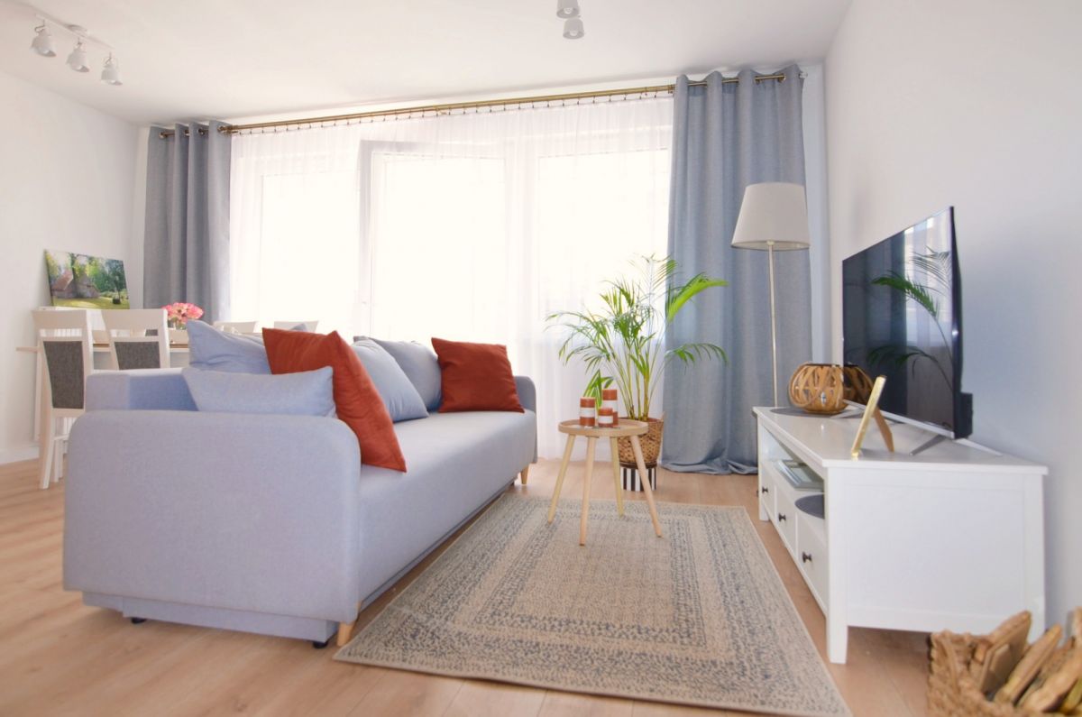 Oferowany lokal o powierzchni 55 m² został zaprojektowany z myślą o wygodzie codziennego życia. Mieszkanie jest w pełni umeblowane oraz wyposażone, gotowe do zamieszkania od zaraz.