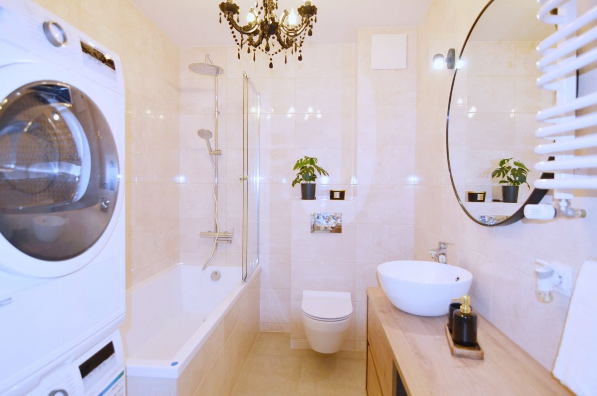 ✔ pełne wyposażenie AGD: lodówka, płyta indukcyjna, piekarnik, zmywarka, pralka, suszarka do ubrań